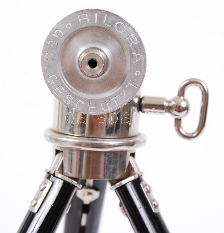 Leírás: "Bilora" feliratú antik fotóállvány, jelzett, bőr tokban, m:47 cm