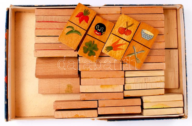 Leírás: Régi festett fa dominó, memóriajáték, két fajta méretben, hiányos
