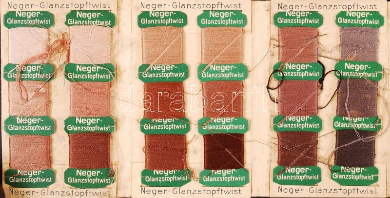 Leírás: "Rette den Strumpf" mit Neger-Glanzstopftwist (Mentsd meg a harisnyát), harisnyavarró cérna, 90 m 18 szép harisnyaszínben