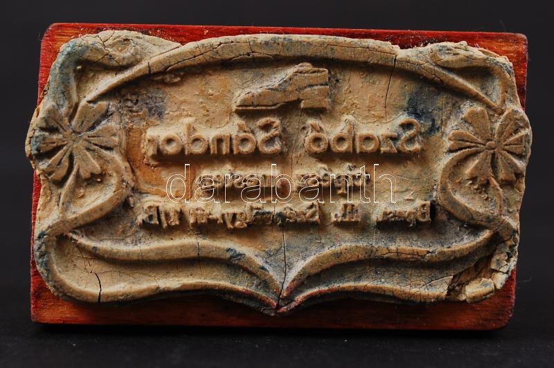 Leírás: Szabó Sándor cipész mester Budapest feliratú fa pecsétnyomó