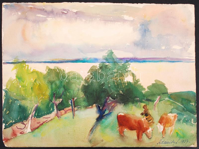Ádámffy László (1902-?): Legelő tehenek a Balatonnál. Akvarell, papír,... https://www.darabanth.com/hu/203-Gyorsarveres/203.0/Festmeny-mutargy-papirregiseg-egyeb/Festmenyek-es-grafikak~200001/Adamffy-Laszlo-1902-Legelo-tehenek-a-Balatonnal-Akvarell-papir-jelzett-28C39738-cm~II810577