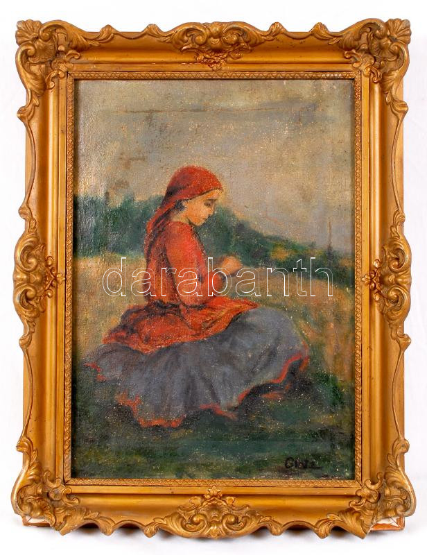 Leírás: Glotz jelzéssel: Búslakodó lány. Olaj, vászon, lekopott festékkel, antik keretben 35×24 cm
