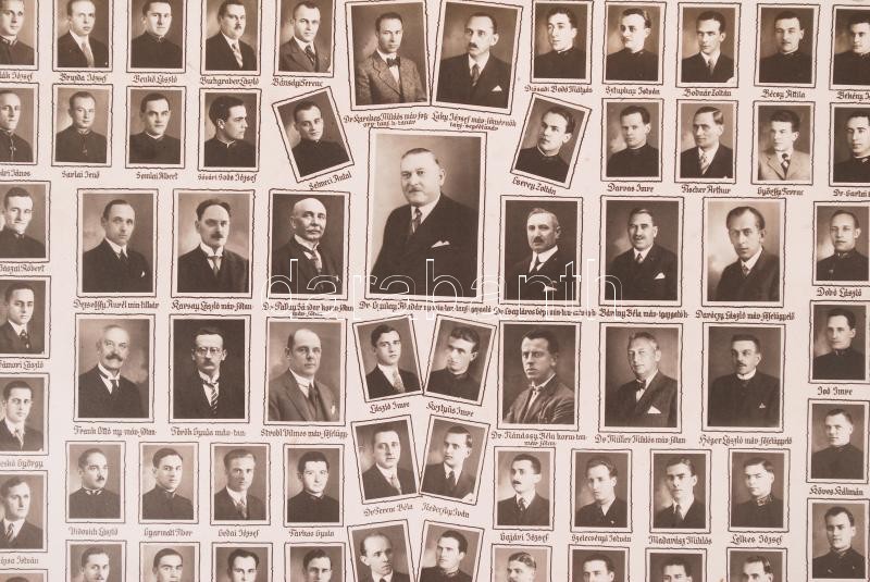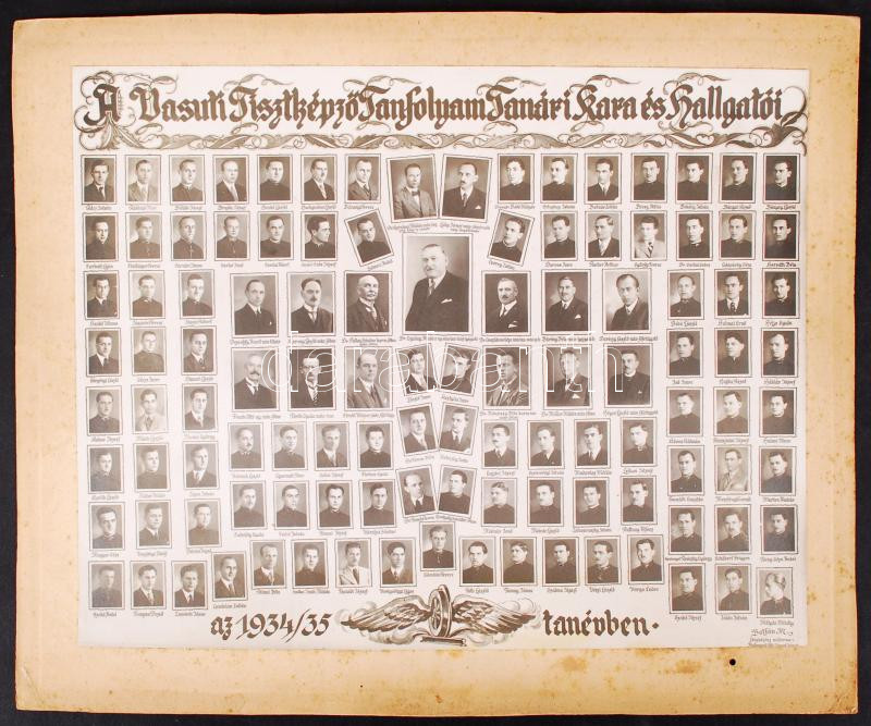 1935 Botfán Mór: A vasúti tisztképző tanfolyam tanári kara és hallgatói, a tablóképen 112 kisportré olvasható nevekkel, képméret 22x28 cm, karton 27x32 cm