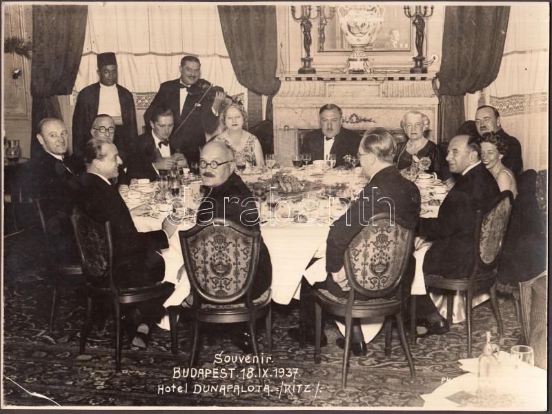 1937 Stemmer photo: Vacsora társaság a Hotel Duna-palotában, pecséttel... https://www.darabanth.com/hu/203-Gyorsarveres/203.0/Festmeny-mutargy-papirregiseg-egyeb/Foto~200017/1937-Stemmer-photo-Vacsora-tarsasag-a-Hotel-Duna-palotaban-pecsettel-jelzett-18x23-cm~II806074