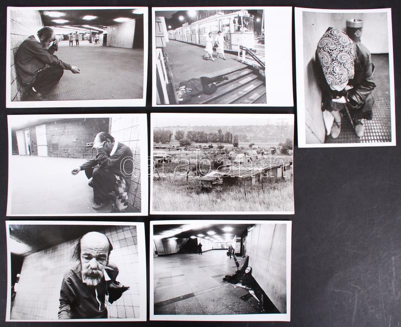 Leírás: 1993-1994 Hajdu András képriportja budapesti hajléktalanokról, 7 db fotó, pecséttel jelzett, 13x18 cm