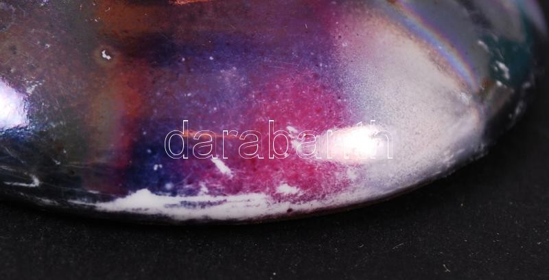 Leírás: 2 db szivárványszínű kerámia váza, apró hibával, jelzett, m: 21 cm