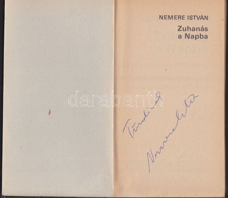 Leírás: Nemere Istvűn: Zuhanás a napba, Dedikált! Bp., 1986, Népszava