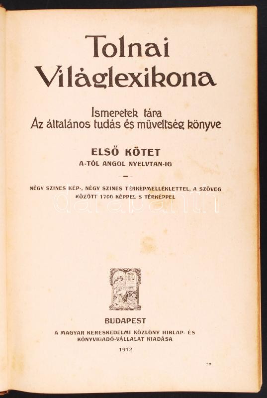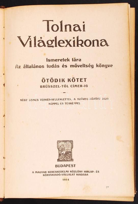 Leírás: Tolnai Világlexikon I.-II. kötet A-Csipkéig. Bp., 1915. Tolnai. Egyik köteten kis foszlás egyéblként jó állapotban