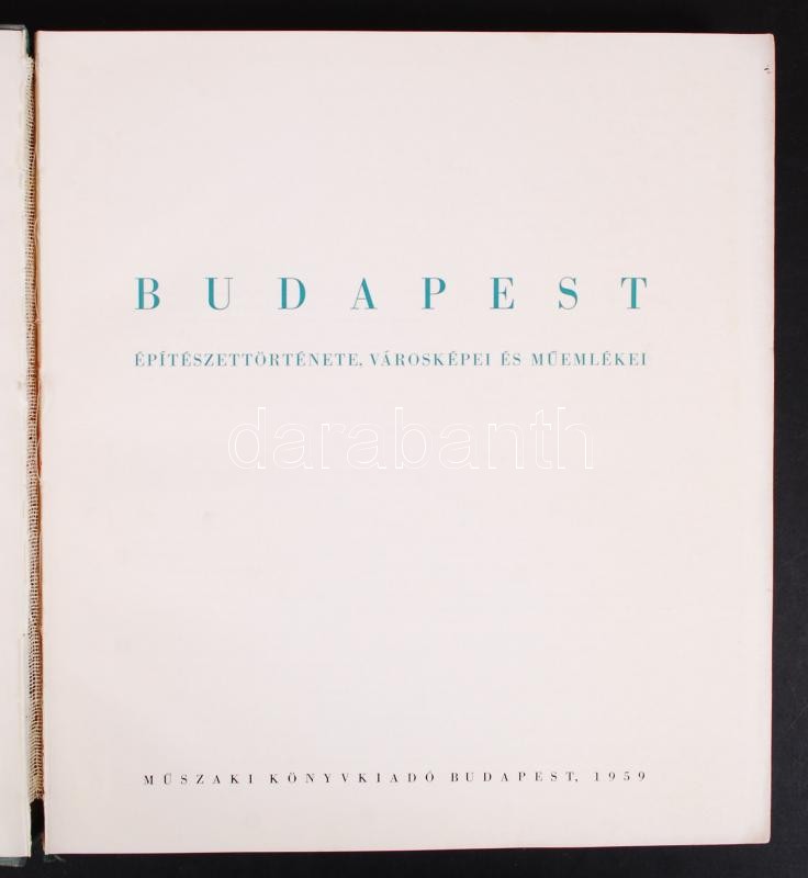 Borsos Béla-Zádor Mihály-Sódor Alajos: Budapest építészettörténete, városképei és műemlékei. Bp., 1959, Műszaki Könyvkiadó. 3 térképpel és rengeteg képpel illusztrált, kiadói egészvászon kötés, belül a gerincnél kissé levált, jó állapotban.