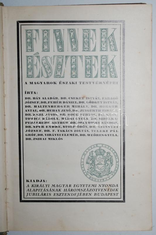 Finnek, észtek. A magyarok északi testvérnépei. Írták (többek között): Dr. Kogutovicz Károly, Dr. Szinnyei József, Teleki Pál, Dr. Zsirai Miklós, etc. Bp., 1928, Kir. Magy. Egyetemi Nyomda. Illusztrált papírkötésben, sok képpel