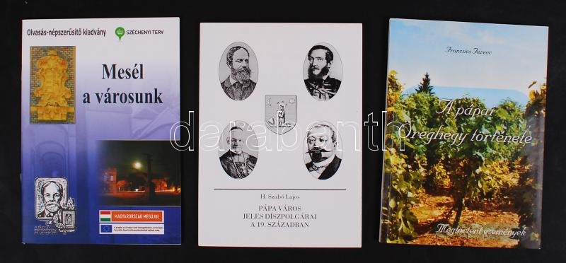 3 db kiadvány-Francsics Ferenc: A pápai Öreghegy története. Pápa, 2008; Váminé Molnár Emma (szerk.): Mesél a városunk. Pápa, 2011; H. Szabó Lajos: Pápa város jeles díszpolgárai a 19. században. Pápa, 1998.