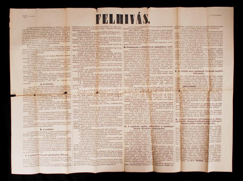 Leírás: 1884 Nagyméretű plakát az újoncozás szabályairól és hadkötelezettségről.
