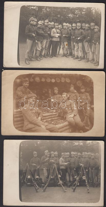 Leírás: cca 1916 egyazon alakulat katonái 3 db részben feliratozott fotólap / WW. military photo