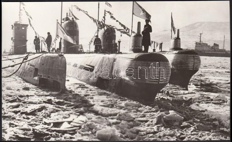 Leírás: cca 1960-1970 Orosz tengeralattjárók téli kikötőben, 12x20 cm