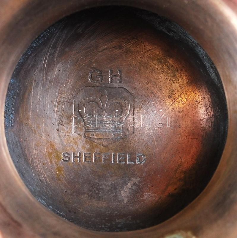 Leírás: Szecessziós ezüstözött alpakka kínálótál, jelzett (GH Scheffield), jó állapotban, d:25 cm, m:10 cm