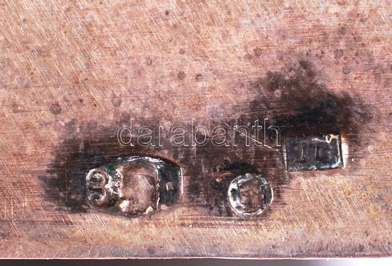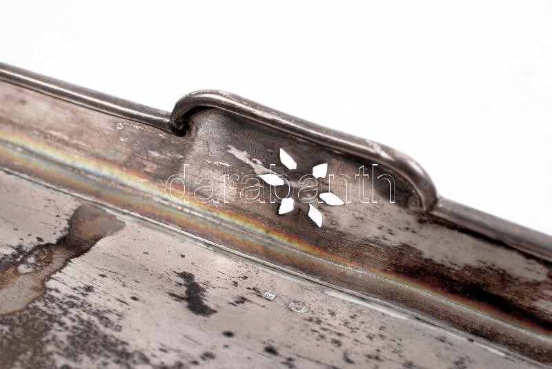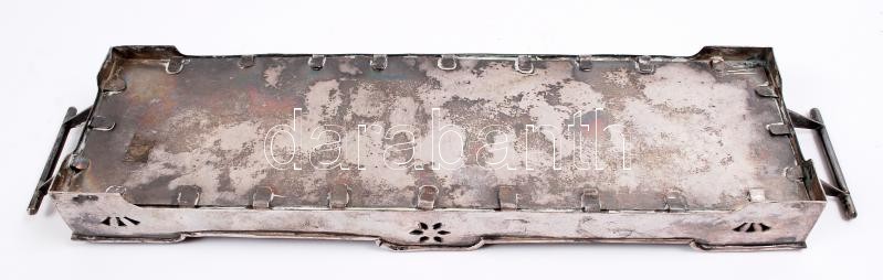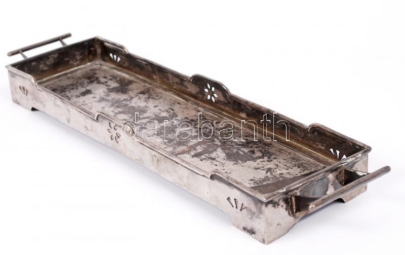 Leírás: Ezüst (Ag.) art-deco füles tálca, üvegbetét nélkül, jelzett, mesterjeggyel, 32×8 cm, nettó:291 g
