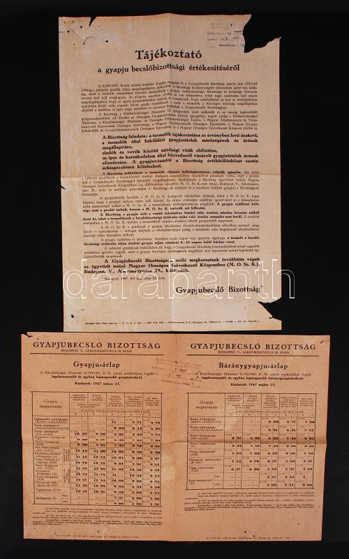 1947 Budapest, Tájékoztató a gyapjúértékesítésről, gyapjúárlap. https://www.darabanth.com/hu/203-Gyorsarveres/203.0/Festmeny-mutargy-papirregiseg-egyeb/Nyomtatvanyok~200041/1947-Budapest-Tajekoztato-a-gyapjuertekesitesrol-gyapjuarlap~II760725