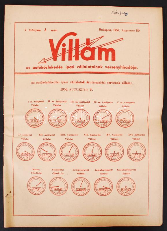 Leírás: 1956 Villám: az autóközlekedés ipari vállalatainak versenyhíradója