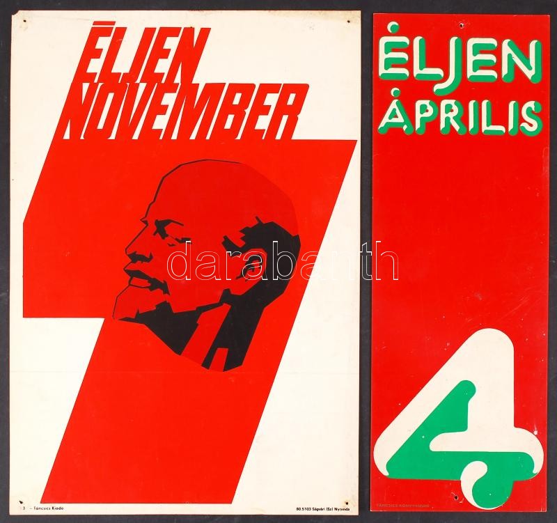 cca 1960-1970 Táblaszerű propaganda plakátok (Éljen április 4., Éljen ... https://www.darabanth.com/hu/203-Gyorsarveres/203.0/Festmeny-mutargy-papirregiseg-egyeb/Nyomtatvanyok~200041/cca-1960-1970-Tablaszeru-propaganda-plakatok-Eljen-aprilis-4-Eljen-november-7-4-db~II809679