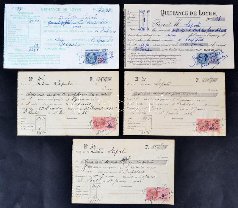 Leírás: Franciaország 1946-1950 5 db számla illetékbélyegekkel
