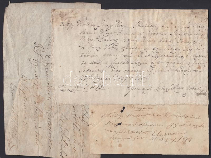 Leírás: cca 1800 Olaszliszka környéki földbirtokosok által aláírt 3 db magyar nyelvű nyugta