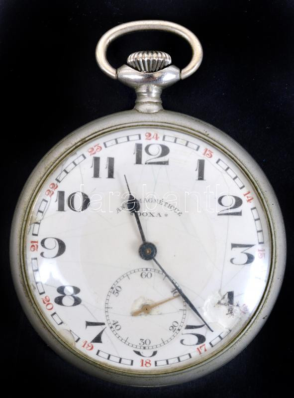 Leírás: Doxa másodpercmutatós zsebóra, repedésekkel a számlapon. Jól jár / Doxa pocket watch, cracks on the dial