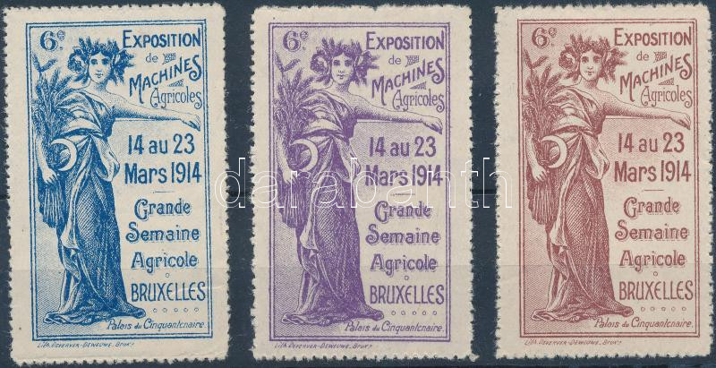 Leírás: 1914 Brüsszeli Mezőgazdasági kiállítás 3 db-os levélzáró sor