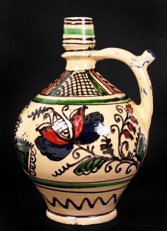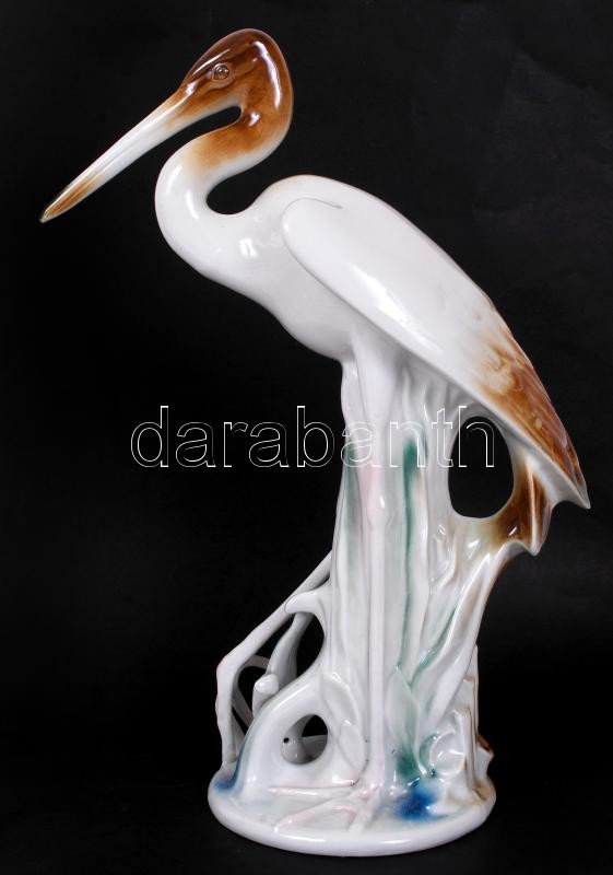 Leírás: 2 db kerámia és porcelán tárgy szürke gém, kézzel festett, hibátlan, jelzett, kancsó m:38 cm