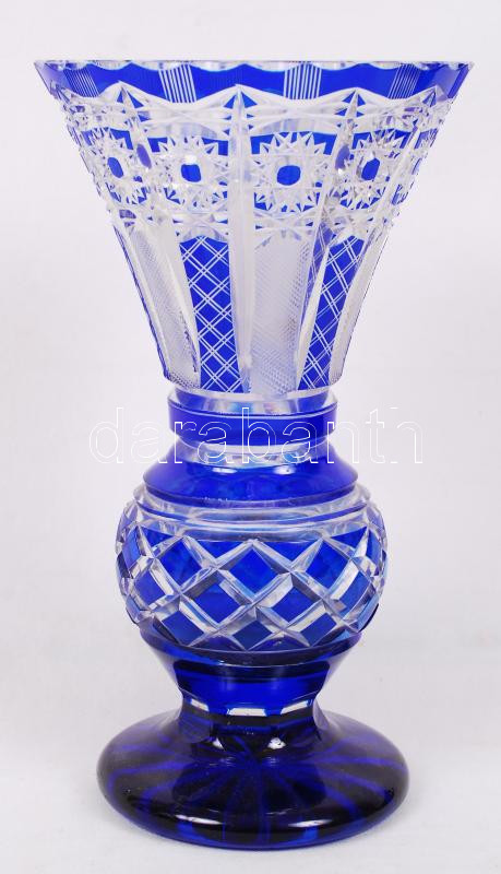 Ólomkristály többrétegű váza, csiszolt, karcolásokkal, m:26 cm https://www.darabanth.com/hu/203-Gyorsarveres/203.0/Festmeny-mutargy-papirregiseg-egyeb/Uvegtargyak~200007/Olomkristaly-tobbretegu-vaza-csiszolt-karcolasokkal-m26-cm~II810122