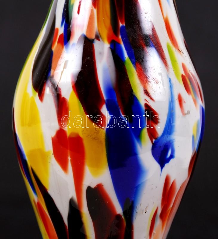 Leírás: Többrétegű színes dekoratív üveg váza, m: 23 cm