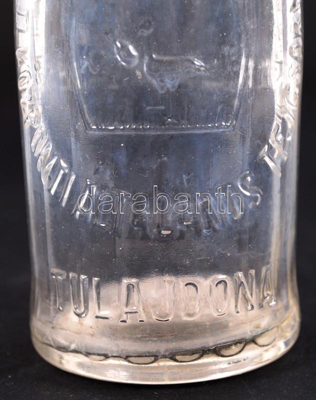 Leírás: cca 1930 Budapesti Központi Általános Tejcsarnok R.T. 2dl-es tejesüveg, védjeggyel ellátva /