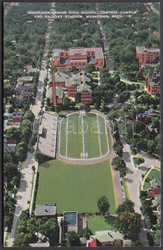 Muskegon, Michigan; Senior High School, Central Campus and Hackley Sta... https://www.darabanth.com/hu/203-Gyorsarveres/203.0/Kepeslapok/Amerikai-Egyesult-Allamok~600316/Muskegon-Michigan-Senior-High-School-Central-Campus-and-Hackley-Stadium~II808962