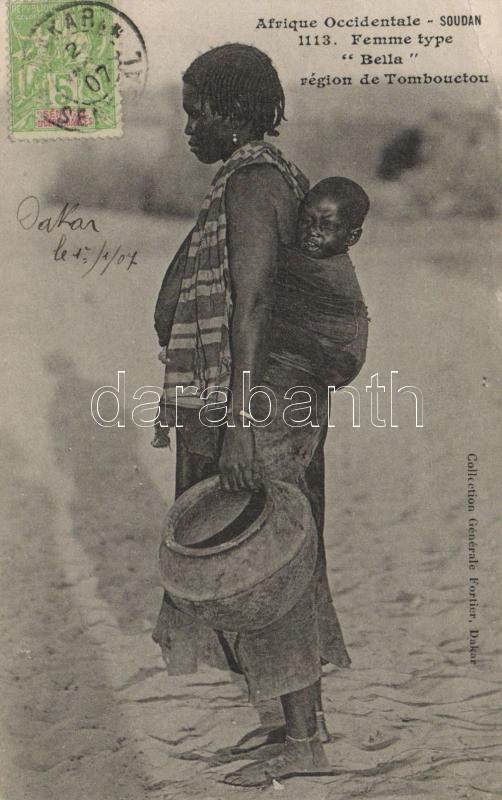 "Bella" woman from Tombouctou, folklore (small tear) https://www.darabanth.com/hu/203-Gyorsarveres/203.0/Kepeslapok/Folklor~600333/Bella-woman-from-Tombouctou-folklore-small-tear~II810075