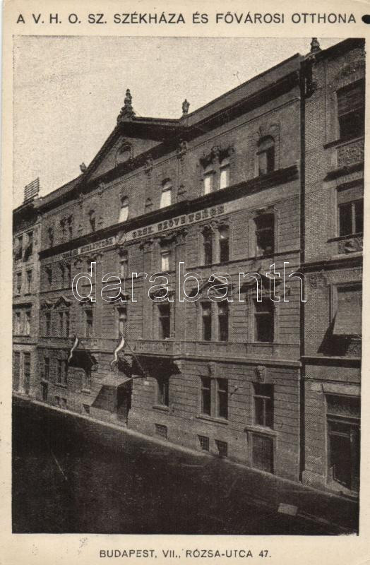 Leírás: Budapest VII. Rózsa utca, Vidéki Hírlapírók Országos Szövetségének székháza és fővárosi otthona