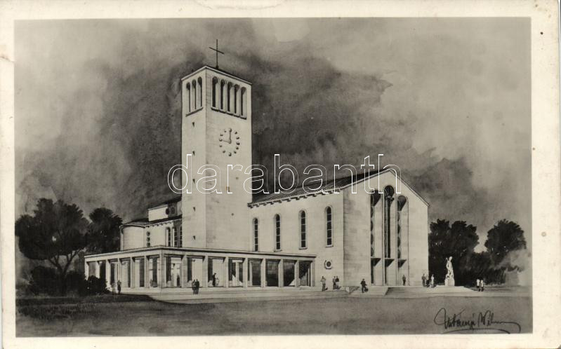 Leírás: Budapest XXII. Budafok-Felsőváros, Jézus szíve templom tervrajz (kis szakadás / small tear)