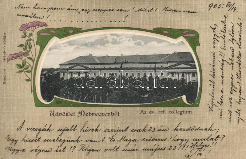 Debrecen, Református Collegium, Art Nouveau litho (fa) https://www.darabanth.com/hu/203-Gyorsarveres/203.0/Kepeslapok/Magyarorszag~400007/Debrecen-Reformatus-Collegium-Art-Nouveau-litho-fa~II807828