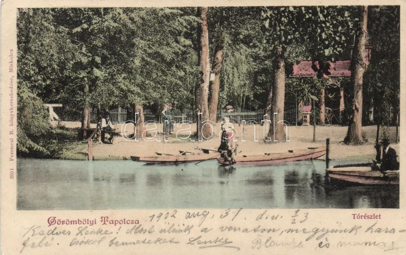 Görömbölytapolca, Tó; kiadja Ferenczi B. könyvkereskedése https://www.darabanth.com/hu/203-Gyorsarveres/203.0/Kepeslapok/Magyarorszag~400007/Gorombolytapolca-To-kiadja-Ferenczi-B-konyvkereskedese~II811868