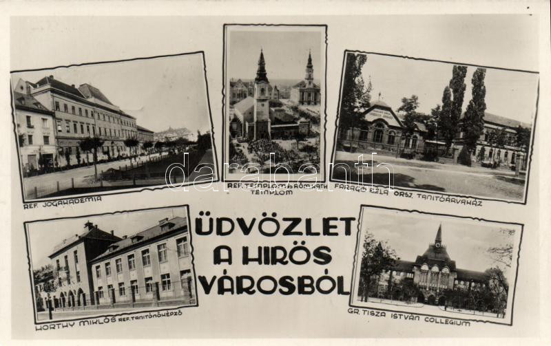 Leírás: Kecskemét Református Jogakadémia, Faragó Béla tanító árvaháza, Tisza István Kollégium, Horthy Miklós tanítóképző