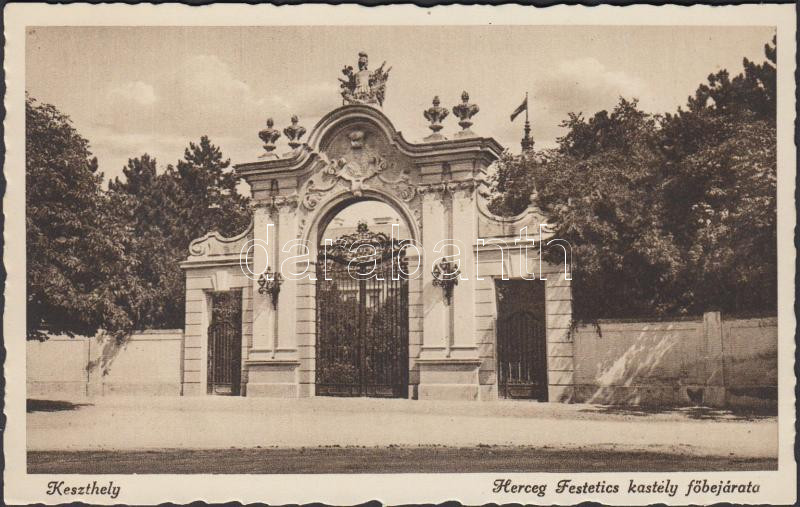 Keszthely, Festetics-kastély bejárata https://www.darabanth.com/hu/203-Gyorsarveres/203.0/Kepeslapok/Magyarorszag~400007/Keszthely-Festetics-kastely-bejarata~II760741