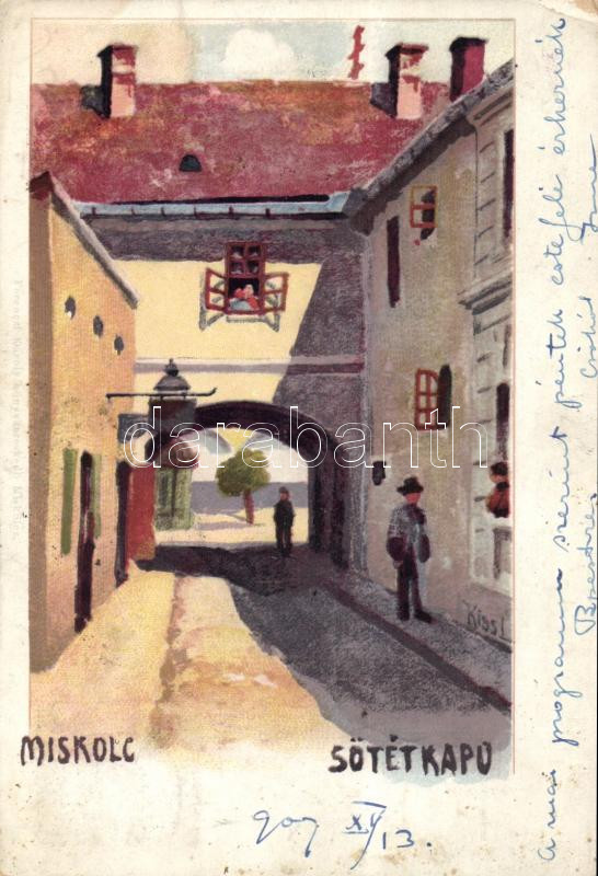 Miskolc Sötét kapu, litho, s: Kiss L. (EK)