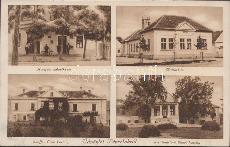 Répcelak, Hangya, kultúrház, Stauffer Ernő és Szentmártoni Radó kastél... https://www.darabanth.com/hu/203-Gyorsarveres/203.0/Kepeslapok/Magyarorszag~400007/Repcelak-Hangya-kulturhaz-Stauffer-Erno-es-Szentmartoni-Rado-kastelyai~II811132