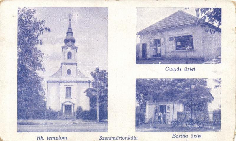 Szentmártonkáta, Gulyás üzlet, Bartha üzlet, katolikus templom (EM) https://www.darabanth.com/hu/203-Gyorsarveres/203.0/Kepeslapok/Magyarorszag~400007/Szentmartonkata-Gulyas-uzlet-Bartha-uzlet-katolikus-templom-EM~II807702