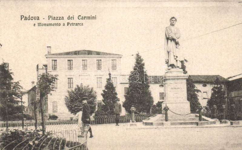 Padova, Piazza dei Carmini / square, statue of Petrarca https://www.darabanth.com/hu/203-Gyorsarveres/203.0/Kepeslapok/Olaszorszag~600406/Padova-Piazza-dei-Carmini-square-statue-of-Petrarca~II807746