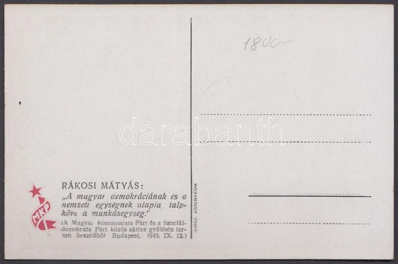 Rákosi Mátyás, Szakasits Árpád https://www.darabanth.com/hu/203-Gyorsarveres/203.0/Kepeslapok/Uralkodo-Politikus~600400/Rakosi-Matyas-Szakasits-Arpad-3Cbr3E~II809316