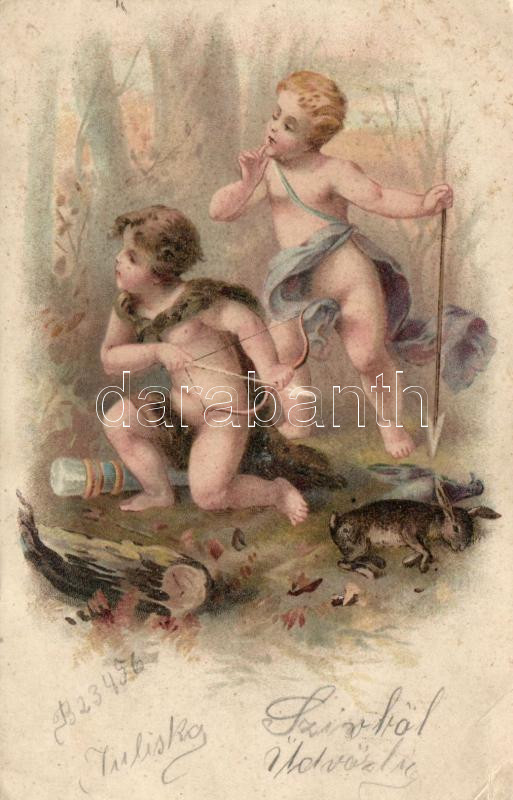 Puttos, hunting litho (small tear) https://www.darabanth.com/hu/203-Gyorsarveres/203.0/Kepeslapok/Vadasz~600385/Puttos-hunting-litho-small-tear~II734996