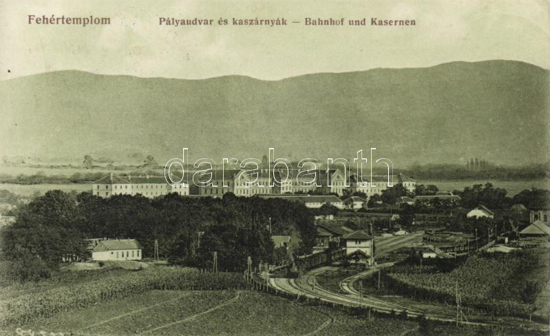 Fehértemplom, Vasútállomás, kaszárnyák (Rb) https://www.darabanth.com/hu/203-Gyorsarveres/203.0/Kepeslapok/Vajdasag~400012/Fehertemplom-Vasutallomas-kaszarnyak-Rb~II809029