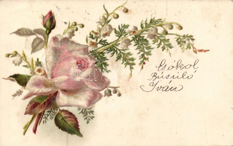 Flower, rose, litho, decorated greeting card, (small tear) https://www.darabanth.com/hu/203-Gyorsarveres/203.0/Kepeslapok/Virag~600389/Flower-rose-litho-decorated-greeting-card-small-tear~II756854