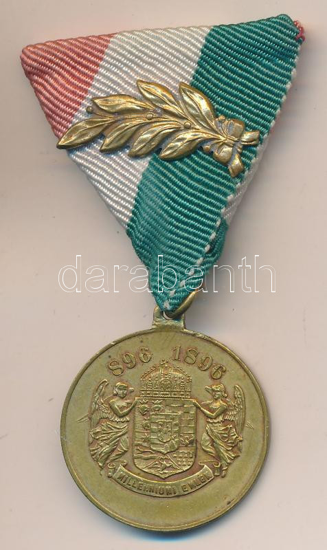 Leírás: 1896. "Magyarország ezer Éves Fennállása Emlékére - Millenniumi Emlék" nemzeti színű mellszalagon babérággal T:2