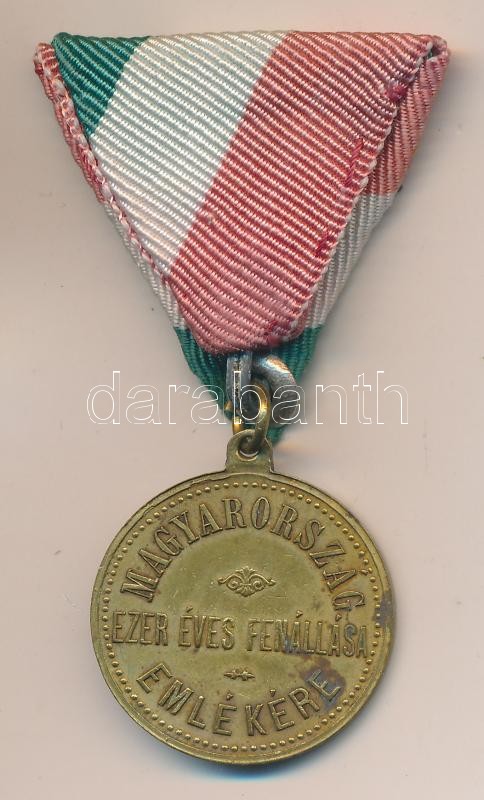 1896. "Magyarország ezer Éves Fennállása Emlékére - Millenniumi E... https://www.darabanth.com/hu/203-Gyorsarveres/203.0/Numizmatika/Falerisztika-Kituntetesek-jelvenyek~17/1896-Magyarorszag-ezer-Eves-Fennallasa-Emlekere--Millenniumi-Emlek-nemzeti-szinu-mellsz~II810160