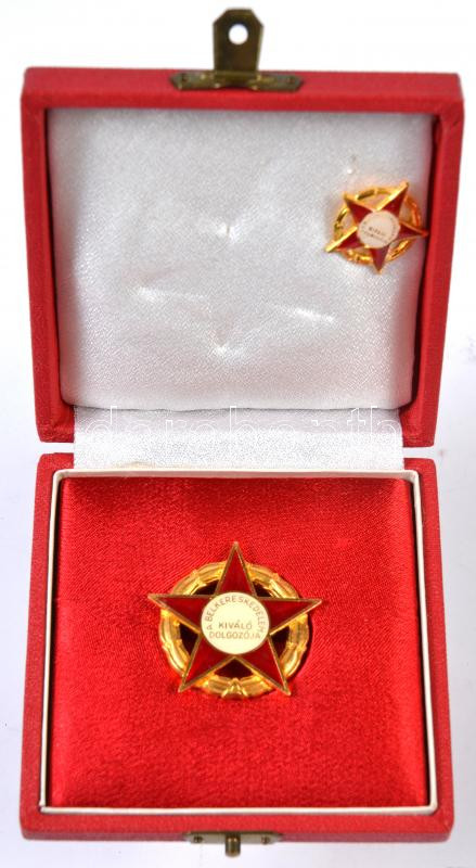 Leírás: ~1980. "A Belkereskedelem Kiváló Dolgozója" aranyozott kitüntetés miniatűrrel eredeti dísztokban T:1